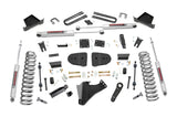 Level Up Your Super Duty Stance: Transform your fifth-generation Ford F-250/F-350 Super Duty with Rough Country's 4.5" Suspension Lift Kit, the perfect solution for eliminating factory rake and gaining a bold, aggressive profile. This front-to-rear leveling kit not only boosts ground clearance but also delivers a clean, commanding look that dominates both street and trail.Engineered for a Smooth, Balanced Ride: Lifted front coil springs deliver additional ride height without compromising comfort or control. Radius arm drop brackets correct caster alignment, preserving your truck's factory handling and ride quality. Meanwhile, sway bar drop brackets and a track bar ensure everything stays at the ideal geometry for a balanced, predictable driving experience.Built to Last, Mile After Mile: This kit includes heavy-duty fabricated rear blocks, engineered to outlast and outperform standard cast blocks. Anti-axle wrap rear blocks help eliminate common lift-related issues while maintaining factory ride quality. Whether loaded down or running empty, this suspension system stays smooth and reliable.Customize Your Performance: Choose the shocks that match your driving style: our rugged N3 series for a versatile balance of highway comfort and off-road capability, or upgrade to V2 Monotube shocks for enhanced performance with lightning-fast response and heat dissipation. The power to personalize your ride is yours.Simple Installation. Serious Results: With a 100% bolt-on design, this lift kit installs easily no cutting, no drilling, and no hassle. Plus, it clears up to a 35" tire with the proper wheel backspacing, giving you the freedom to run the setup you've been dreaming of.Rough Country Has You Covered: Every Rough Country 4.5" Suspension Lift Kit is backed by our Limited Lifetime Replacement Warranty, so you can lift with confidence.